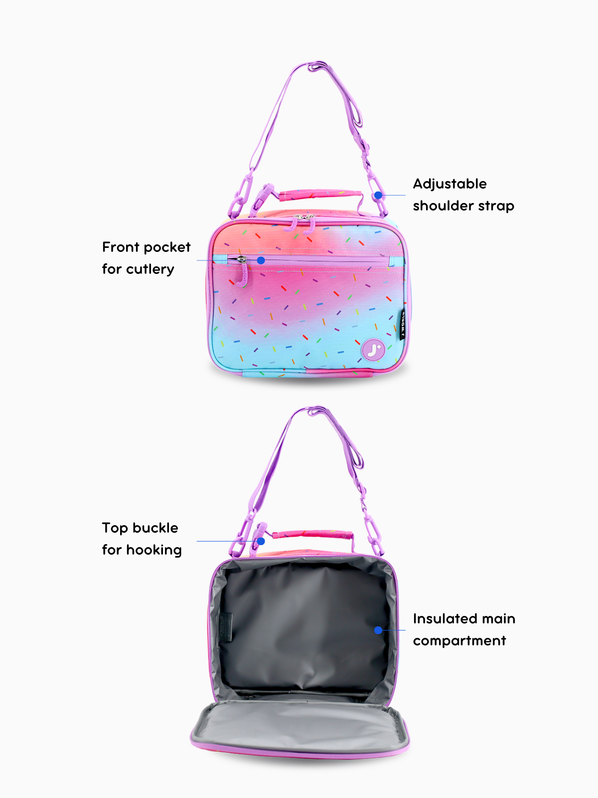 - Adjustable Shoulder Strap: Detachable and adjustable, allowing kids to carry the bag comfortably on their shoulder or by the top handle.