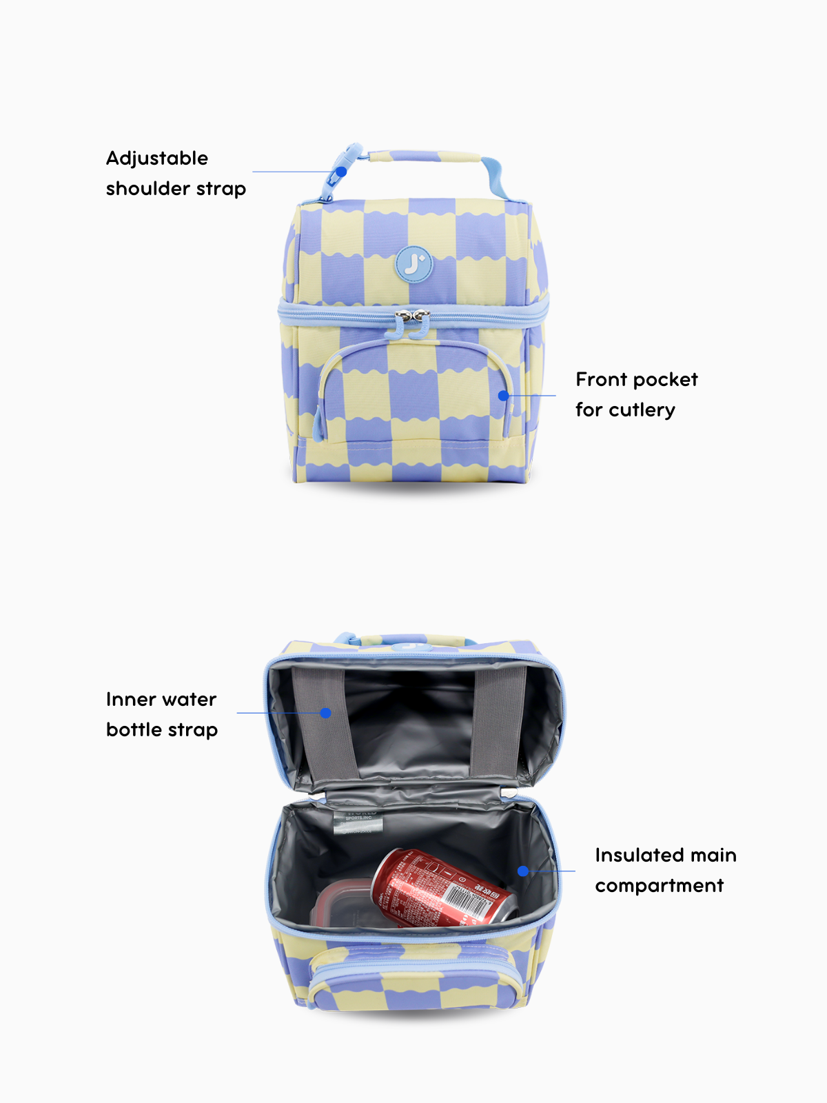 Keep your food fresh with the Corey Insulated Lunch Bag. Compact yet spacious, it fits easily in a child’s backpack or office fridge while holding a medium lunch. It stores a drink, yogurt, fruit cup, snacks, and gel packs, with a top strap to secure your drink. The front pocket holds condiments, and the high-density insulation with heat-reflective lining keeps food at the right temperature. Made from durable, washable fabric, it wipes clean with ease.