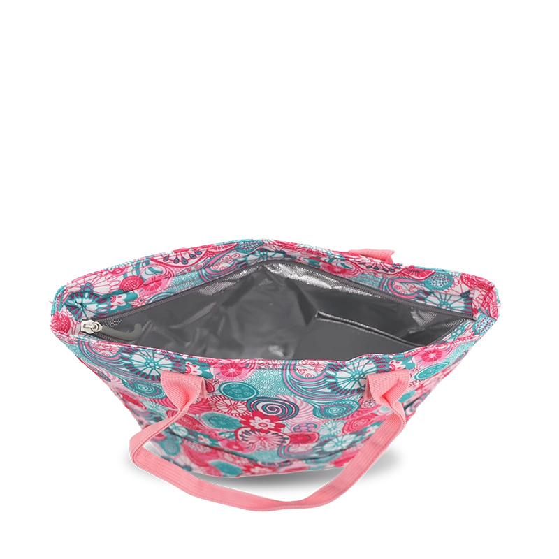 This is a nice design, love the tropical colors and has plenty of room for a couple medium size tupperwear and 8 ounce water bottles. Good price for good quality. Sadly I lost it during a bus ride. I packed my snacks in it and I know whoever found it is lucky.