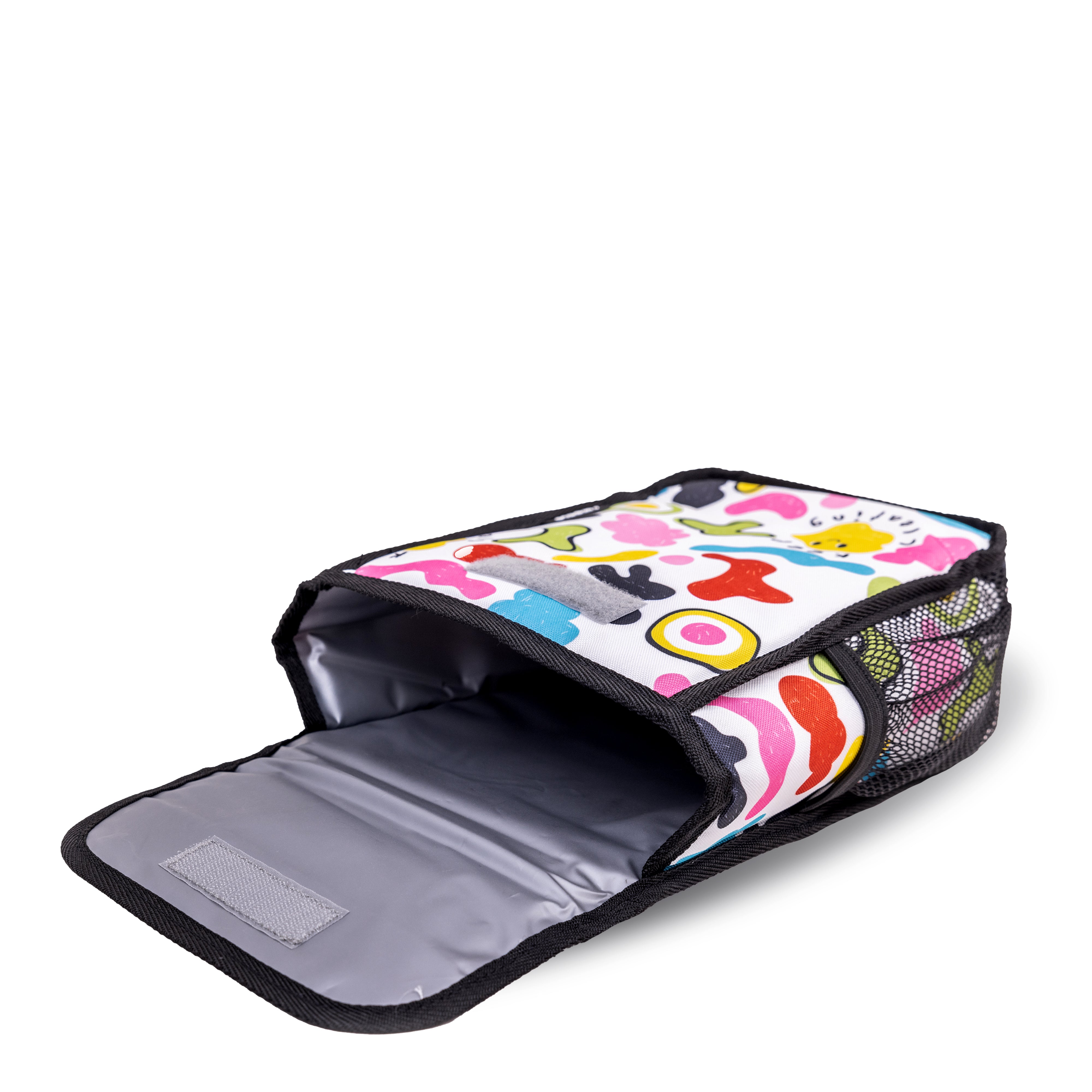 Included lunch bag for kids keeps food at the right temperature. Holds a sandwich, drink, snack, and ice pack. Measures 10 x 8 x 4 inches