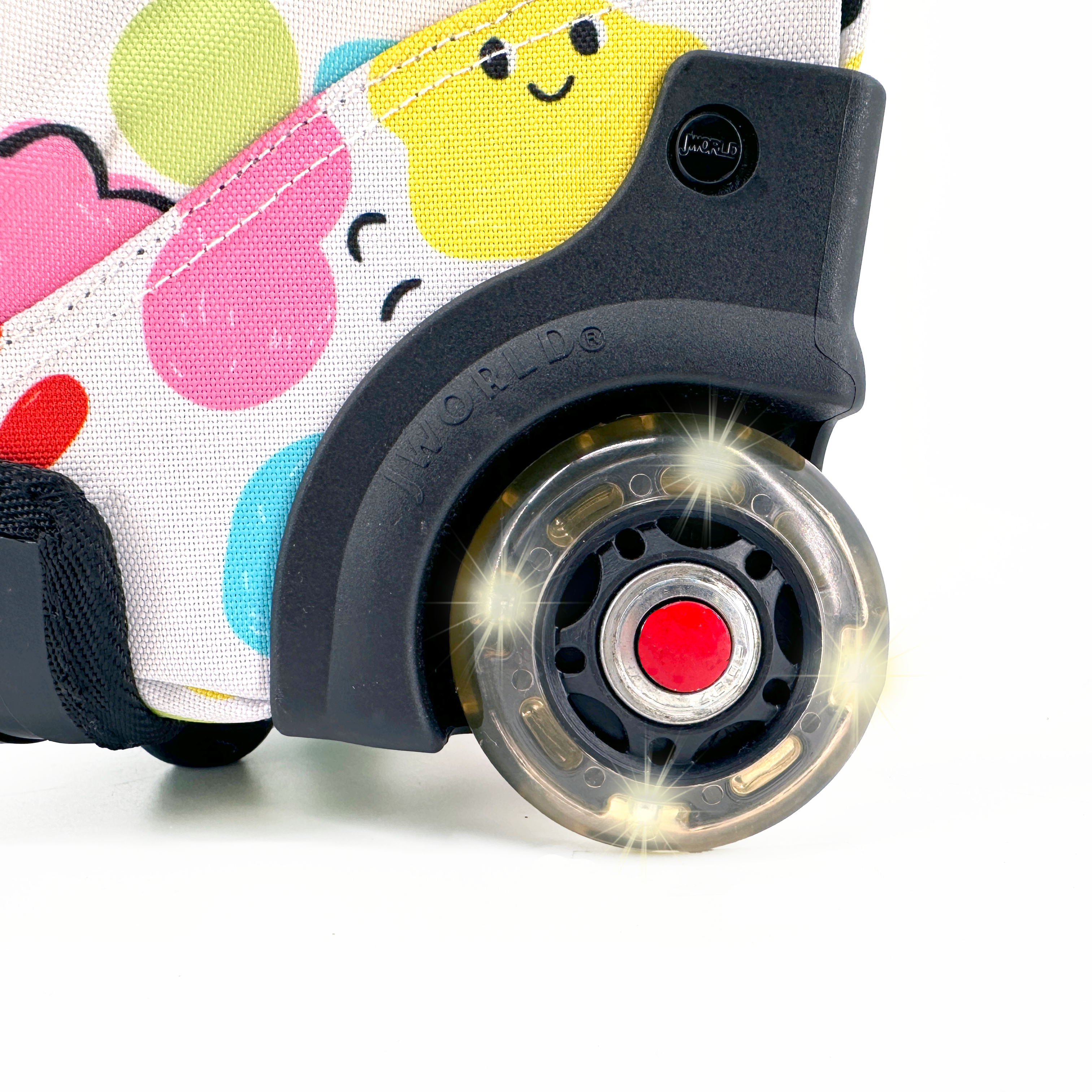 Motion-activated LED light-up backpack wheels blink ad they turn (No batteries required!)